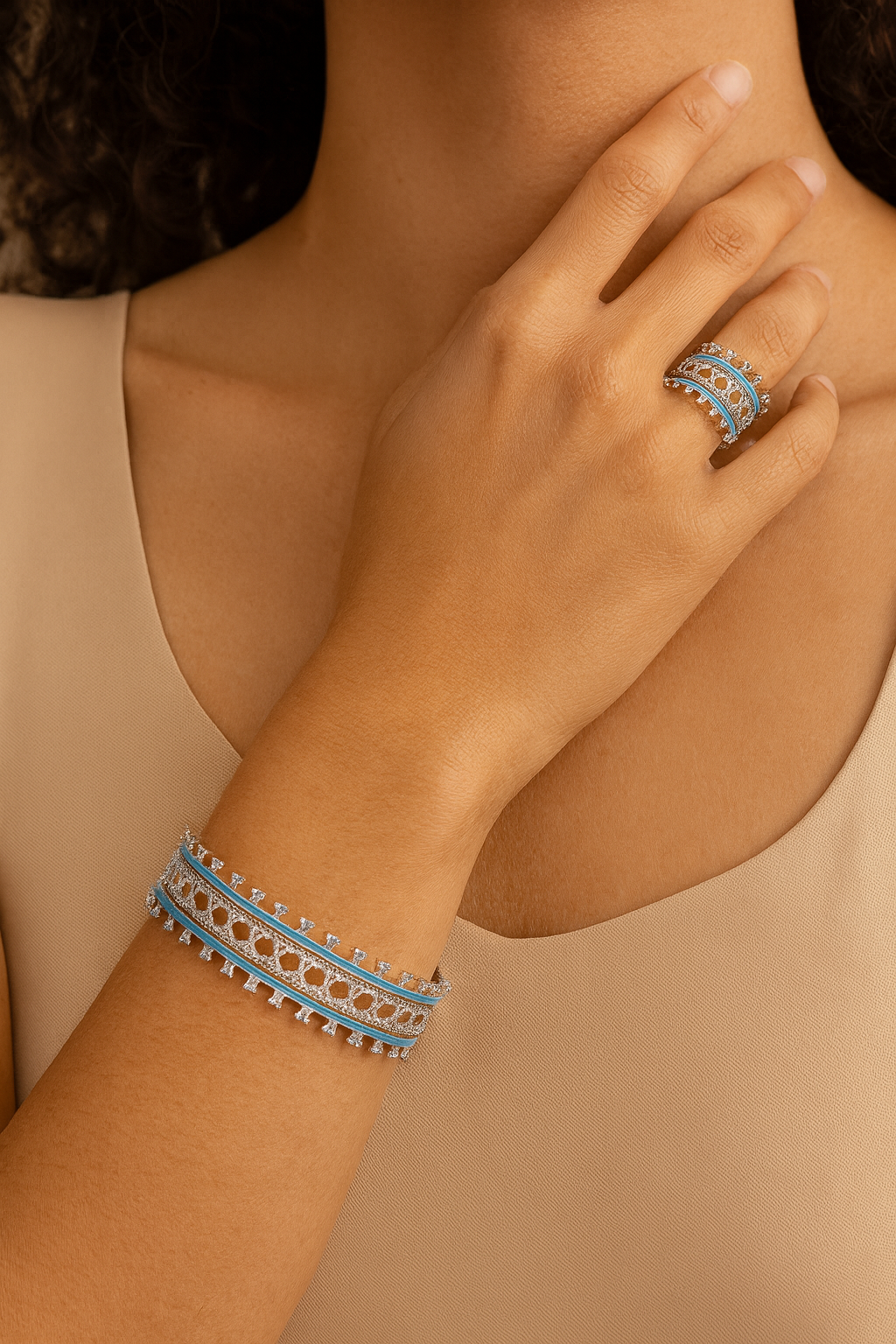 - Pieces: 3 (Bangle, Ring, and Earrings)